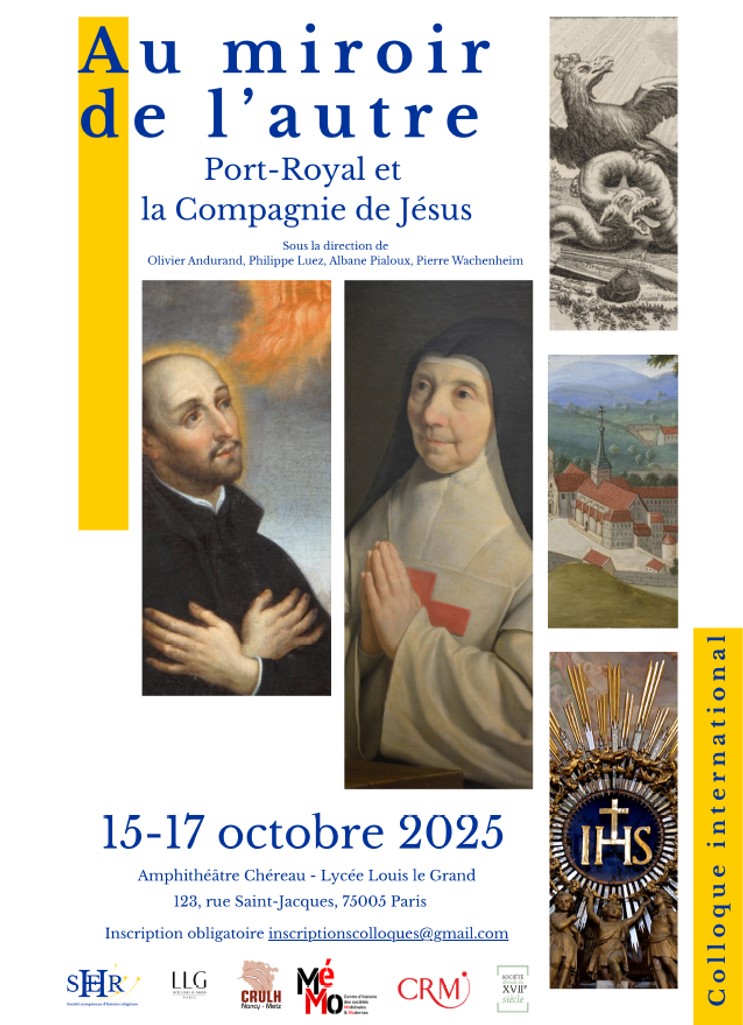 Nous sommes fiers de vous présenter le premier colloque "Au miroir de l'autre. Port-Royal et la Compagnie de Jésus", co-organisé par la SEHR, le Mémo de l'université de Paris Nanterre, le Centre Roland Mousnier de Sorbonne Université, et la Société d'Etudes du 17e siècle